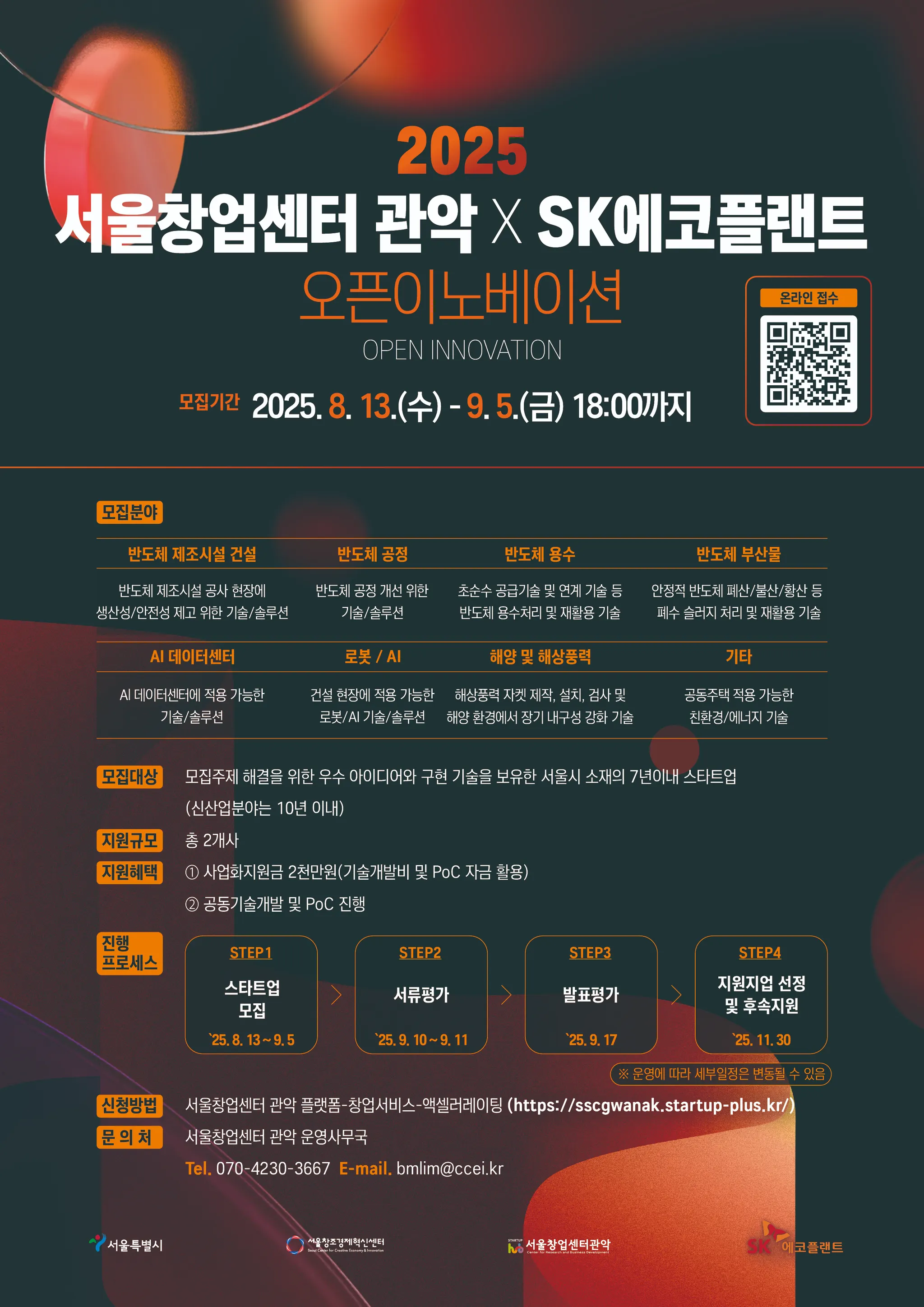 2025년 서울창업센터 관악×SK에코플랜트 반도체·AI·로봇 분야 오픈이노베이션 참여기업 모집(~9/5)