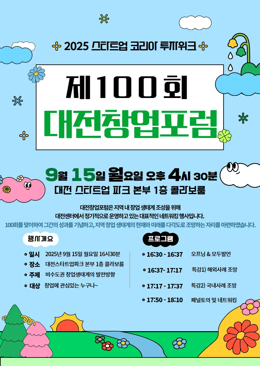 100회를 맞이하여 그간의 성과를 기념하고, 지역 창업 생태계의 현재와 미래를 다각도로 조망하는 자리를 마련하였습니다.