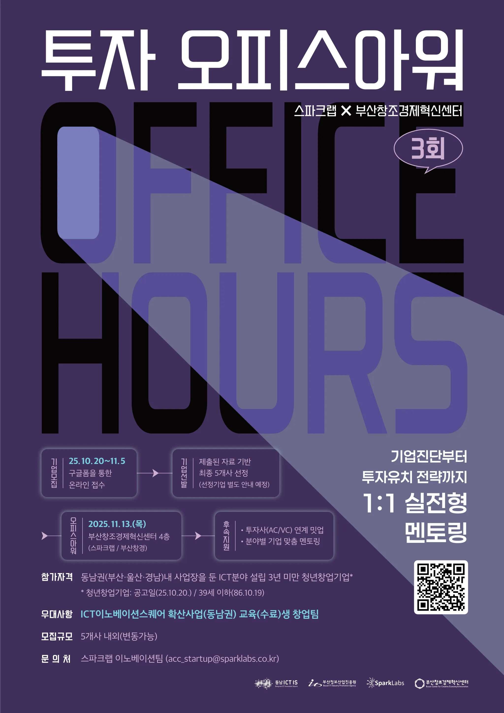 [부산창경센터] 부산창경 x 스파크랩 2025년 동남권 ICT사업 투자 오피스아워 참가자 모집(~11/12)